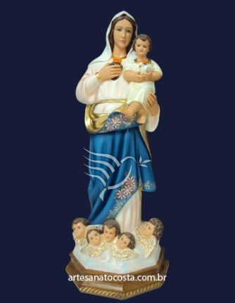 Imagem de Nossa Senhora da Paz 60cm (modelo com coração). Estátuas perfeitas, qualidade e alta resistência. Arte sacra, modelo de escultura católica exclusivo Artesanato Costa.
