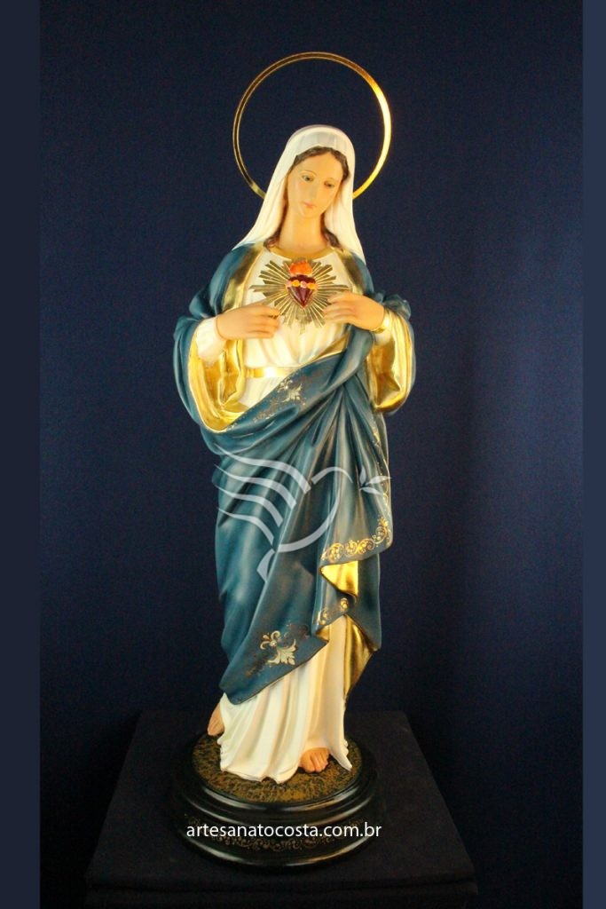 Imagem de Nossa Senhora Imaculado Coração de Maria 60cm. Estátuas perfeitas, qualidade e alta resistência. Arte sacra, modelo de escultura católica exclusivo Artesanato Costa.