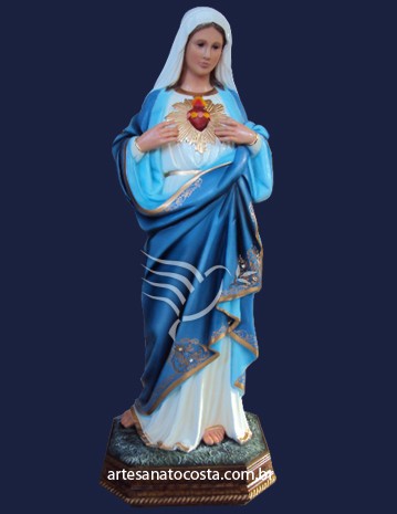 Imagem de Nossa Senhora Imaculado Coração de Maria 80cm. Estátuas perfeitas, qualidade e alta resistência. Arte sacra, modelo de escultura católica exclusivo Artesanato Costa.