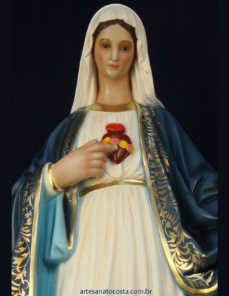 Imagem de Nossa Senhora Imaculado Coração de Maria (modelo mão esquerda abaixada) 100cm. Estátuas perfeitas, qualidade e alta resistência. Arte sacra, modelo de escultura católica exclusivo Artesanato Costa.