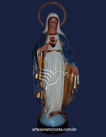 Imagem de Nossa Senhora Imaculado Coração de Maria 40cm (modelo mão esquerda abaixada). Estátuas perfeitas, qualidade e alta resistência. Arte sacra, modelo de escultura católica exclusivo Artesanato Costa.