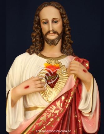 Imagem do Sagrado Coração de Jesus modelo tradicional 80cm. Estátuas perfeitas, qualidade e alta resistência. Arte sacra, modelo de escultura católica exclusivo Artesanato Costa.