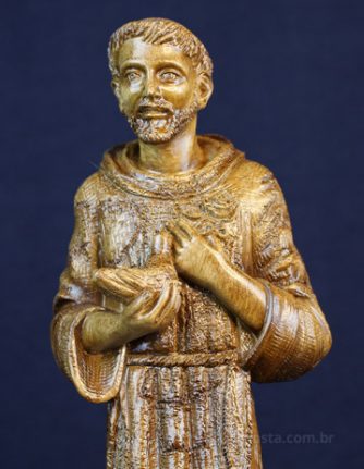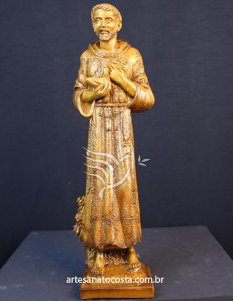 Imagem de São Francisco do Perdão 35cm em resina. Estátuas perfeitas, qualidade e alta resistência. Arte sacra, modelo de escultura católica exclusivo Artesanato Costa.