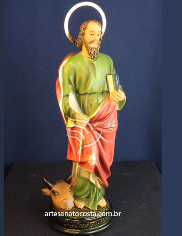 Imagem de São Lucas 30cm. Estátuas perfeitas, qualidade e alta resistência. Arte sacra, modelo de escultura católica exclusivo Artesanato Costa.